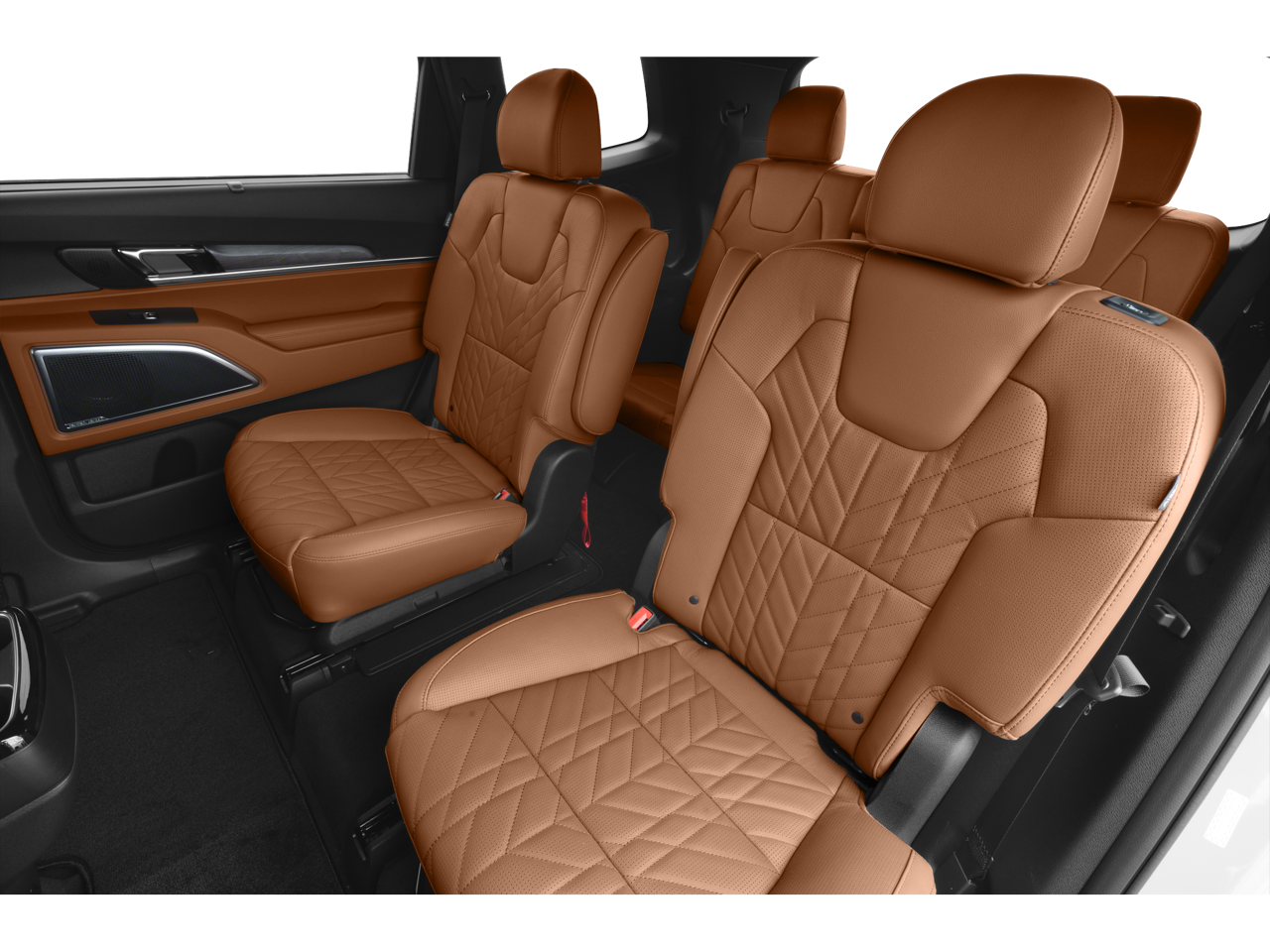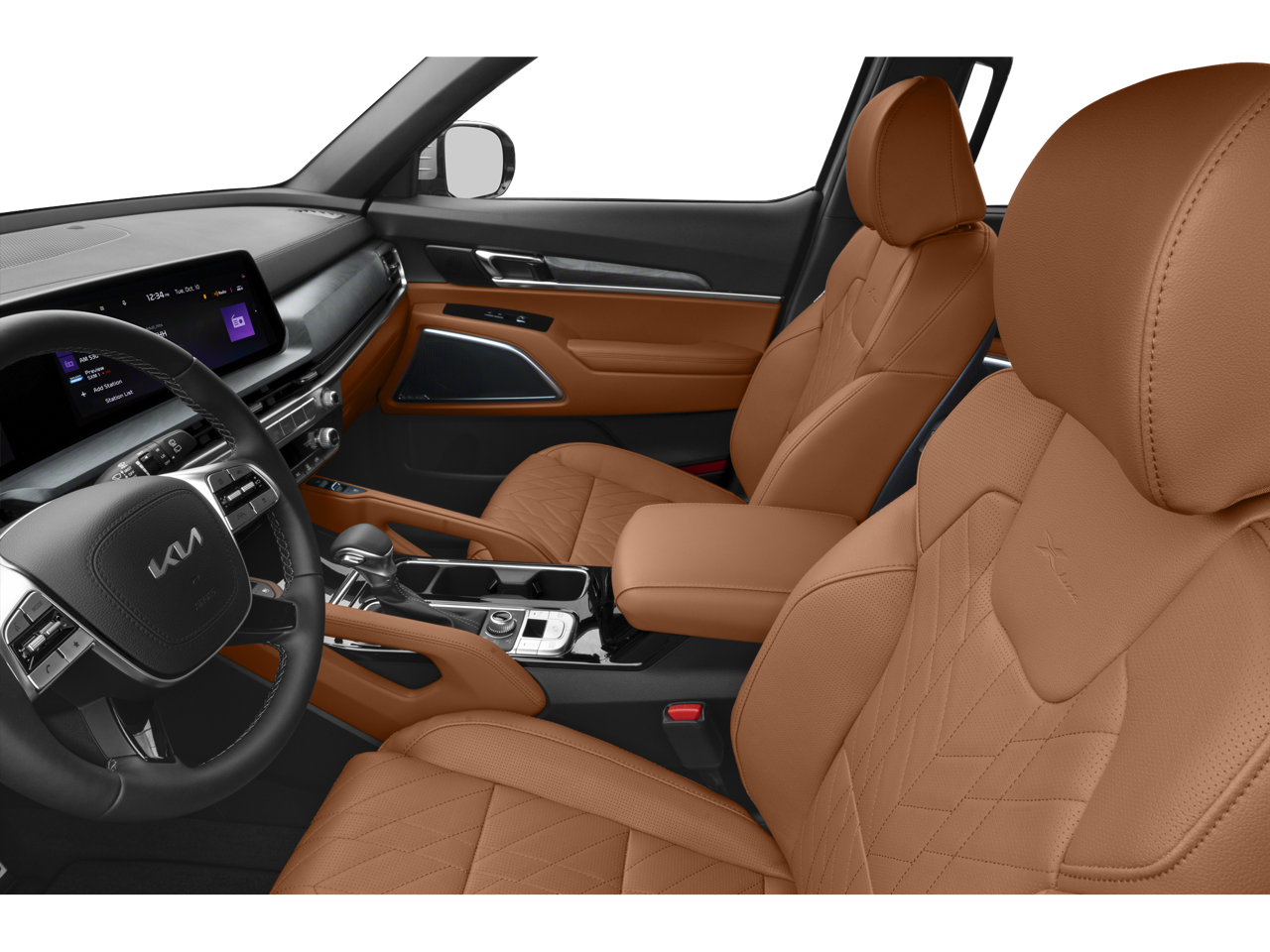 Equipped with Terracotta Interior Color Package, 10 Speakers, 3.648 Axle Ratio, 3rd row seats: split-bench, 4-Wheel Disc Brakes, ABS brakes, Air Conditioning, Alloy wheels, AM/FM radio: SiriusXM, Apple CarPlay & Android Auto, Auto High-beam Headlights, Auto-dimming Rear-View mirror, Auto-leveling suspension, Automatic temperature control, Brake assist, Bumpers: body-color, Carpet Floor Mats, Compass, Delay-off headlights, Driver door bin, Driver vanity mirror, Dual front impact airbags, Dual front side impact airbags, Electronic Stability Control, Emergency communication system: 911 Connect, Exterior Parking Camera Rear, Four wheel independent suspension, Front anti-roll bar, Front Bucket Seats, Front Center Armrest, Front dual zone A/C, Front fog lights, Front reading lights, Fully automatic headlights, Garage door transmitter: HomeLink, harman/kardon® Speakers, Heated & Ventilated Front Bucket Seats, Heated door mirrors, Heated front seats, Heated steering wheel, Illuminated entry, Knee airbag, Leather Seat Trim, Leather Shift Knob, Leather steering wheel, Low tire pressure warning, Memory seat, Navigation System, Occupant sensing airbag, Outside temperature display, Overhead airbag, Overhead console, Panic alarm, Passenger door bin, Passenger vanity mirror, Power door mirrors, Power driver seat, Power Liftgate, Power moonroof, Power passenger seat, Power steering, Power windows, Radio data system, Radio: AM/FM Harman Kardon Audio System, Rear air conditioning, Rear anti-roll bar, Rear audio controls, Rear reading lights, Rear side impact airbag, Rear window defroster, Rear window wiper, Reclining 3rd row seat, Remote keyless entry, Roof rack: rails only, Security system, Smart Key w/ Push Button and Remote Start, Speed control, Speed-sensing steering, Split folding rear seat, Spoiler, Steering wheel mounted audio controls, Tachometer, Telescoping steering wheel, Tilt steering wheel, Traction control, Trip computer, Turn signal indicator mirrors, Variably intermittent wipers, Ventilated front seats, and Wheels: 20 x 7.5 Black Finish X-LINE Exclusive.