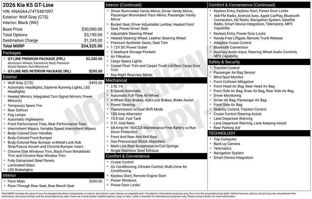 Recent Arrival! $1,600 off MSRP! 2026 Kia K5 GT-Line Wolf Gray AWD