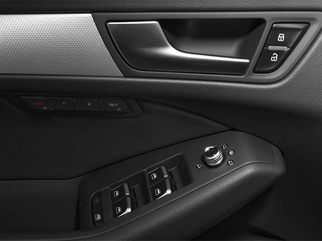 Equipped with Leather, 10 Speakers, 2.84 Axle Ratio, 4-Wheel Disc Brakes, 8.0J x 18 5-Spoke-V-Design Wheels, ABS brakes, Air Conditioning, Alloy wheels, AM/FM radio: Sirius, Automatic temperature control, Brake assist, Bumpers: body-color, CD player, Delay-off headlights, Driver door bin, Driver vanity mirror, Dual front impact airbags, Dual front side impact airbags, Electronic Stability Control, Four wheel independent suspension, Front anti-roll bar, Front Bucket Seats, Front Center Armrest, Front dual zone A/C, Front fog lights, Front reading lights, Garage door transmitter: HomeLink, Genuine wood console insert, Genuine wood dashboard insert, Genuine wood door panel insert, Heated door mirrors, Illuminated entry, Leather Seating Surfaces, Leather Shift Knob, Leather steering wheel, Low tire pressure warning, Occupant sensing airbag, Outside temperature display, Overhead airbag, Overhead console, Panic alarm, Passenger door bin, Passenger vanity mirror, Power door mirrors, Power driver seat, Power Front Bucket Seats, Power passenger seat, Power steering, Power windows, Radio data system, Radio: Audi MMI Plus System w/6.5 Color Screen, Rain sensing wipers, Rear air conditioning, Rear anti-roll bar, Rear fog lights, Rear reading lights, Rear seat center armrest, Rear window defroster, Rear window wiper, Remote keyless entry, Roof rack, Security system, Speed control, Speed-sensing steering, Speed-Sensitive Wipers, Split folding rear seat, Spoiler, Steering wheel mounted audio controls, Tachometer, Telescoping steering wheel, Tilt steering wheel, Traction control, Trip computer, Turn signal indicator mirrors, and Variably intermittent wipers.