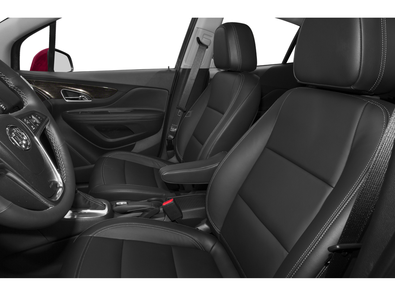 3.53 Final Drive Axle Ratio, 4-Wheel Disc Brakes, 6 Speakers, 6-Way Power Driver Seat Adjuster, 6-Way Power Front Passenger Seat Adjuster, ABS brakes, Air Conditioning, Alloy wheels, AM/FM radio: SiriusXM, Auto-dimming Rear-View mirror, Automatic temperature control, Brake assist, Bumpers: body-color, CD player, Compass, Delay-off headlights, Driver door bin, Driver vanity mirror, Driver's Seat Mounted Armrest, Dual front impact airbags, Dual front side impact airbags, Electronic Stability Control, Emergency communication system: OnStar Directions & Connections, Experience Buick Package (DISC), Exterior Parking Camera Rear, Front anti-roll bar, Front Bucket Seats, Front dual zone A/C, Front fog lights, Front License Plate Bracket, Front reading lights, Front wheel independent suspension, Fully automatic headlights, Heated door mirrors, Heated Driver & Front Passenger Seats, Heated front seats, Heated steering wheel, Illuminated entry, Knee airbag, Leather steering wheel, Leather-Appointed Seat Trim, Low tire pressure warning, Memory seat, Occupant sensing airbag, Outside temperature display, Overhead airbag, Panic alarm, Passenger door bin, Passenger vanity mirror, Power door mirrors, Power driver seat, Power passenger seat, Power steering, Power Tilt-Sliding Moonroof, Power windows, Preferred Equipment Group 1SL, Premium audio system: IntelliLink, Radio data system, Radio: AM/FM Audio System w/MP3 CD Player, Radio: AM/FM Audio System w/Nav/Single CD Player, Rear seat center armrest, Rear side impact airbag, Rear window defroster, Rear window wiper, Remote keyless entry, Ride & Handling Suspension, Roof rack: rails only, Security system, SiriusXM Satellite Radio, Speed control, Speed-sensing steering, Split folding rear seat, Spoiler, Steering wheel mounted audio controls, Tachometer, Telescoping steering wheel, Tilt steering wheel, Traction control, Trip computer, Turn signal indicator mirrors, Variably intermittent wipers, Wheels: 18 5-Spoke Painted Cast Aluminum, Wheels: 18 7-Spoke Painted Cast Aluminum, Wheels: 18 Chromed Aluminum (DISC). 2015 Buick Encore Clean CARFAX.