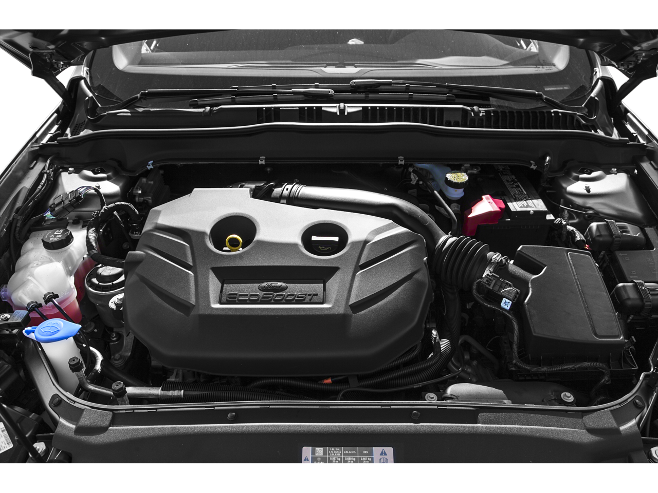 Tuxedo Black 2015 Ford Fusion SE AWD 6-Speed Automatic EcoBoost 2.0L I4 GTDi DOHC Turbocharged VCT Fusion SE, 4D Sedan, EcoBoost 2.0L I4 GTDi DOHC Turbocharged VCT, 6-Speed Automatic, AWD, Tuxedo Black, Charcoal Black w/Cloth Front Bucket Seats, 18 Premium Painted Sport Wheels, 4-Wheel Disc Brakes, 6 Speakers, ABS brakes, Air Conditioning, Alloy wheels, AM/FM radio: SiriusXM, Brake assist, Bumpers: body-color, CD player, Compass, Delay-off headlights, Driver door bin, Driver vanity mirror, Dual front impact airbags, Dual front side impact airbags, EcoCloth Front Bucket Seats, Electronic Stability Control, Exterior Parking Camera Rear, Four wheel independent suspension, Front anti-roll bar, Front Bucket Seats, Front Center Armrest, Front reading lights, Fully automatic headlights, Heated door mirrors, Illuminated entry, Knee airbag, Low tire pressure warning, Occupant sensing airbag, Outside temperature display, Overhead airbag, Overhead console, Panic alarm, Passenger door bin, Passenger vanity mirror, Power door mirrors, Power driver seat, Power passenger seat, Power steering, Power windows, Radio data system, Radio: AM/FM Stereo/MP3/Single-CD, Rear anti-roll bar, Rear reading lights, Rear seat center armrest, Rear window defroster, Remote keyless entry, Security system, SIRIUS Satellite Radio, Speed control, Speed-sensing steering, Speed-Sensitive Wipers, Split folding rear seat, Spoiler, Steering wheel mounted audio controls, SYNC Communications & Entertainment System, Tachometer, Telescoping steering wheel, Tilt steering wheel, Traction control, Trip computer, Turn signal indicator mirrors, Variably intermittent wipers.