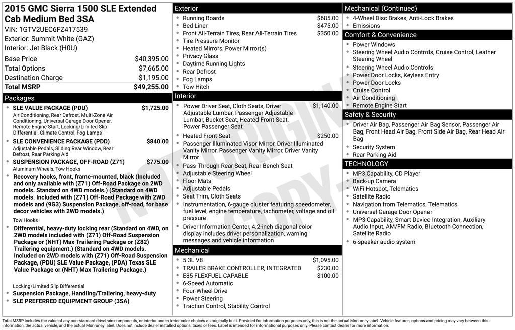 ***CALL 740-773-2153 FOR MOST ACCURATE INFORMATION***Discover the perfect balance of power, capability, and comfort in this 2015 GMC Sierra 1500 SLE. Boasting a robust EcoTec3 5.3L V8 engine, this truck delivers exceptional performance with 355 horsepower and 383 lb-ft of torque, ensuring you can tackle any task with confidence. The 4-wheel-drive system and off-road suspension package further enhance its versatility, making it a true workhorse that can handle even the toughest terrain.- Spray-on Bed Liner- E85 Flex Fuel Capable- Integrated Trailer Brake Controller- Heated Driver and Front Passenger Seats- SLE Convenience Package- SLE Value Package- Off-Road Suspension PackageStepping inside, you'll be greeted by the SLE's premium cloth bucket seats, providing exceptional comfort and support for long drives. The dual-zone automatic climate control and power-adjustable pedals ensure you can customize your driving experience to perfection. The advanced IntelliLink infotainment system, complete with an 8-inch touchscreen, seamlessly integrates your smartphone, allowing you to stay connected on the go.This Sierra 1500 SLE also boasts a host of advanced safety features, including a rear vision camera, rear park assist, and OnStar with 4G LTE connectivity. Whether you're hauling heavy loads, towing a trailer, or simply enjoying the open road, this versatile truck is up to the task.Discover the perfect blend of power, capability, and comfort in this 2015 GMC Sierra 1500 SLE. Schedule a test drive today and experience the difference for yourself. We're confident you'll be impressed by this exceptional vehicle.Why Buy From Coughlin?At Coughlin Automotive, we keep over 1,000 pre-owned vehicles in stock across 18 dealerships. Enjoy small-town service with big-store selection. Every vehicle is inspected, competitively priced, and backed by our commitment to honesty, value, and customer satisfaction.We carry all makes and models and have vehicles in all different colors. Our pre-owned vehicles could have some of the following features listed: Alloy wheels, aluminum wheels, backup camera, Bluetooth®, cargo package, chrome wheels, convenience package, leather seats, navigation system, power package, remote start, SE package, safety package, sunroof/moonroof, tow package, adaptive cruise control, comfort package, trailer package, appearance package, acoustical package, DVD entertainment system, preferred package, technology package, driver confidence package, audio package, heat package, memory package, off-road package, premium package, premium sound package, remote vehicle starter prep package.