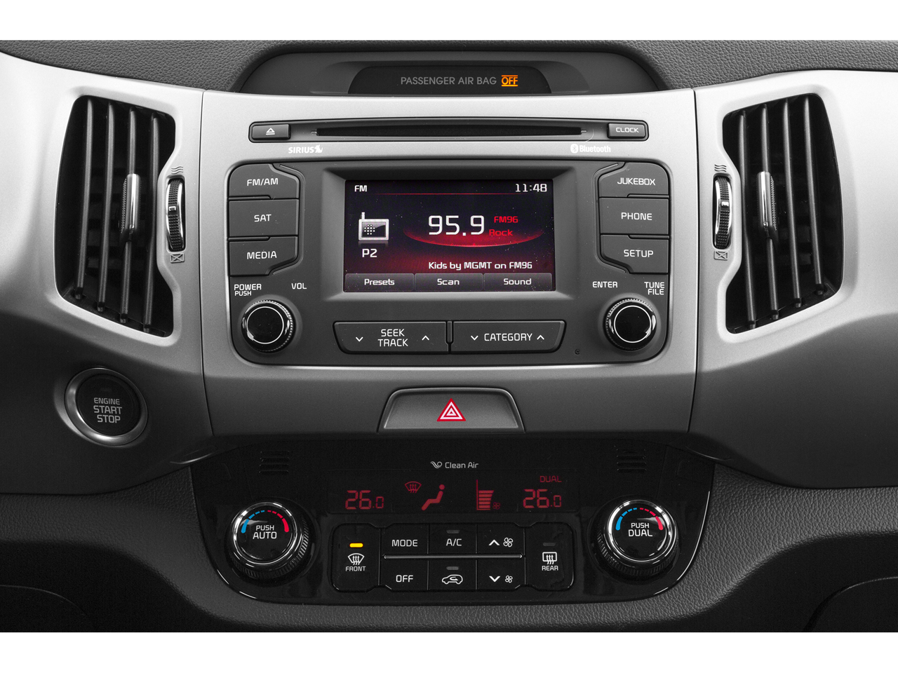 Mineral Silver 2015 Kia Sportage LX AWD 6-Speed Automatic 2.4L I4 DGI DOHC 16V Sportage LX, 4D Sport Utility, 2.4L I4 DGI DOHC 16V, 6-Speed Automatic, AWD, Mineral Silver, Black Cloth, 17 Alloy Wheels, 3.195 Axle Ratio, 4-Wheel Disc Brakes, 6 Speakers, ABS brakes, Air Conditioning, Alloy wheels, AM/FM radio: SiriusXM, AM/FM/CD Radio, Anti-whiplash front head restraints, Brake assist, Bumpers: body-color, Cargo Mat, Cargo Net, Carpet Floor Mats, CD player, Cloth Seat Trim, Delay-off headlights, Driver door bin, Driver vanity mirror, Dual front impact airbags, Dual front side impact airbags, Electronic Stability Control, Four wheel independent suspension, Front anti-roll bar, Front Bucket Seats, Front Center Armrest, Front reading lights, Illuminated entry, Low tire pressure warning, Occupant sensing airbag, Outside temperature display, Overhead airbag, Overhead console, Panic alarm, Passenger door bin, Passenger vanity mirror, Power door mirrors, Power steering, Power windows, Rear anti-roll bar, Rear window defroster, Rear window wiper, Remote keyless entry, Security system, Speed control, Speed-sensing steering, Split folding rear seat, Steering wheel mounted audio controls, Tachometer, Telescoping steering wheel, Tilt steering wheel, Traction control, Variably intermittent wipers, Wheel Locks.