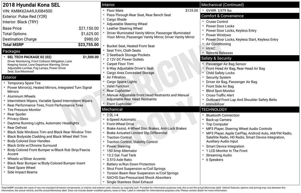 This Kona's sleek exterior in a vibrant Red hue commands attention, while the spacious interior offers a comfortable and well-appointed cabin. With an impressive 27 city/33 highway MPG, this efficient I4 engine and 6-Speed Automatic transmission provide a smooth and responsive ride.
