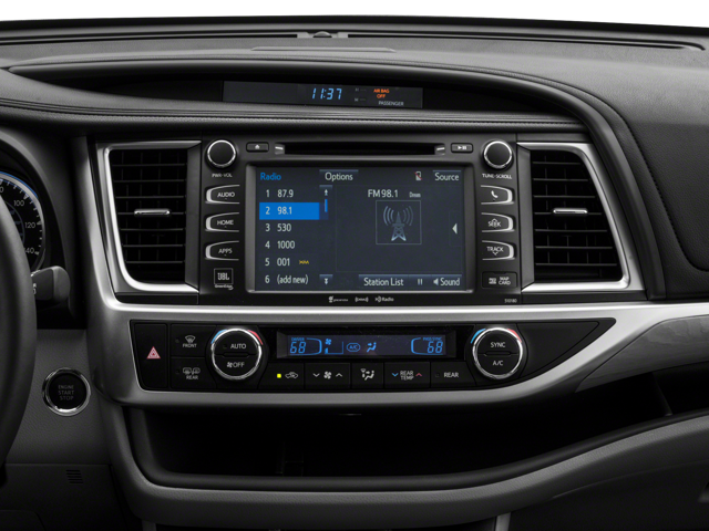 Midnight Black Metallic 2018 Toyota Highlander Limited Platinum FWD 8-Speed Automatic Electronic with ECT-i 3.5L V6 12 Speakers, 3.003 Axle Ratio, 3rd row seats: split-bench, 4-Wheel Disc Brakes, ABS brakes, Air Conditioning, Alloy wheels, AM/FM radio: SiriusXM, Auto High-beam Headlights, Auto-dimming Rear-View mirror, Automatic temperature control, Brake assist, Bumpers: body-color, CD player, Delay-off headlights, Driver door bin, Driver vanity mirror, Dual front impact airbags, Dual front side impact airbags, Electronic Stability Control, Emergency communication system: Safety Connect, Exterior Parking Camera Rear, Four wheel independent suspension, Front anti-roll bar, Front Bucket Seats, Front Center Armrest, Front dual zone A/C, Front fog lights, Front reading lights, Fully automatic headlights, Garage door transmitter, Heated door mirrors, Heated front seats, Heated rear seats, Heated steering wheel, Heated/Ventilated Front Bucket Seats, Illuminated entry, Knee airbag, Leather Shift Knob, Low tire pressure warning, Memory seat, Navigation System, Occupant sensing airbag, Outside temperature display, Overhead airbag, Overhead console, Panic alarm, Panoramic Moonroof, Panoramic View Monitor, Passenger door bin, Passenger vanity mirror, Perforated Leather Seat Trim, Power door mirrors, Power driver seat, Power Liftgate, Power moonroof, Power passenger seat, Power steering, Power windows, Radio: Entune Premium JBL Audio w/Nav & App Suite, Rain sensing wipers, Rear air conditioning, Rear anti-roll bar, Rear reading lights, Rear window defroster, Rear window wiper, Reclining 3rd row seat, Remote keyless entry, Roof rack: rails only, Safety Connect, Security system, Speed control, Speed-sensing steering, Split folding rear seat, Spoiler, Steering wheel mounted audio controls, Tachometer, Telescoping steering wheel, Tilt steering wheel, Traction control, Trip computer, Turn signal indicator mirrors, Variably intermittent wipers, Ventilated front seats, Wheels: 19 5-Spoke Dark-Chromtec Alloy.
