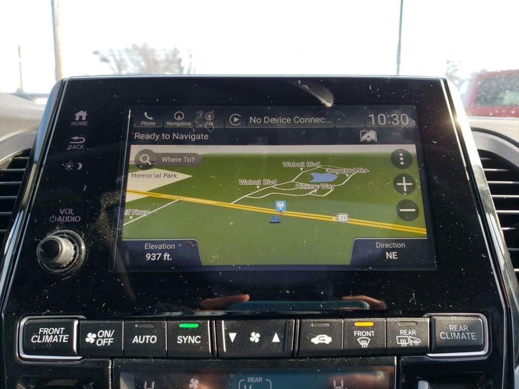 3rd row seats: split-bench, 4-Wheel Disc Brakes, 4.33 Axle Ratio, 7 Speakers, A/V remote: CabinControl, ABS brakes, Air Conditioning, Alloy wheels, AM/FM radio: SiriusXM, Anti-whiplash front head restraints, Apple CarPlay/Android Auto, Auto High-beam Headlights, Auto-dimming Rear-View mirror, Automatic temperature control, Blind Spot Information (BSI) System warning, Brake assist, Bumpers: body-color, Delay-off headlights, Driver door bin, Driver vanity mirror, Driver's Seat Mounted Armrest, Dual front impact airbags, Dual front side impact airbags, Electronic Stability Control, Emergency communication system: HondaLink, Exterior Parking Camera Rear, Forward collision: Collision Mitigation Braking System (CMBS) + FCW mitigation, Four wheel independent suspension, Front anti-roll bar, Front Bucket Seats, Front dual zone A/C, Front fog lights, Front reading lights, Fully automatic headlights, Garage door transmitter: HomeLink, Heated door mirrors, Heated Front Bucket Seats, Heated front seats, Illuminated entry, Knee airbag, Lane departure: Lane Keeping Assist System (LKAS) active, Leather Seat Trim, Leather steering wheel, Low tire pressure warning, Memory seat, Occupant sensing airbag, Outside temperature display, Overhead airbag, Overhead console, Panic alarm, Passenger door bin, Passenger seat mounted armrest, Passenger vanity mirror, Power door mirrors, Power driver seat, Power Liftgate, Power moonroof, Power passenger seat, Power steering, Power windows, Radio data system, Radio: 160-Watt AM/FM/HD/SiriusXM Audio System, Rear air conditioning, Rear anti-roll bar, Rear reading lights, Rear seat center armrest, Rear window defroster, Rear window wiper, Reclining 3rd row seat, Remote keyless entry, Security system, Speed control, Speed-sensing steering, Speed-Sensitive Wipers, Split folding rear seat, Spoiler, Steering wheel mounted audio controls, Tachometer, Telescoping steering wheel, Tilt steering wheel, Traction control, Trip computer, Turn signal indicator mirrors, Variably intermittent wipers, and Wheels: 18 Dark Silver-Painted Alloy.