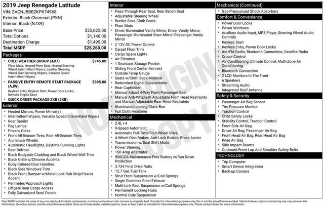 Black Clearcoat 2019 Jeep Renegade Latitude 21/29 City/Highway MPG
