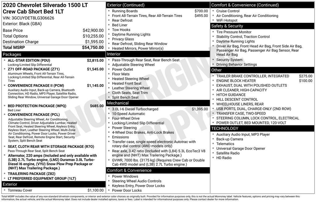 *** CALL OR EMAIL US TODAY FOR YOUR SPECIAL ONLINE DISCOUNT PRICE *** *** THIS VEHICLE IS LOCATED AT COUGHLIN GM OF MARYSVILLE ***Silverado 1500 LT, 4D Crew Cab, 3.0L I6, 4WD, Black, Jet Black Cloth, 10-Way Power Driver Seat w/Lumbar, 12-Volt Rear Auxiliary Power Outlet, 120-Volt Bed Mounted Power Outlet, 120-Volt Instrument Panel Power Outlet, 2 USB Ports, 2 USB Ports (First Row), 3.73 Rear Axle Ratio, 4-Way Manual Driver Seat Adjuster, 4.2 Diagonal Color Display Driver Info Center, 40/20/40 Front Split-Bench Seat, 4G LTE Wi-Fi Hot Spot Capable, All-Star Edition, Bed Protection Package, Bluetooth® For Phone, Chevrolet Connected Access Capable, Chevytec Spray-On Black Bedliner, Chrome Assist Steps, Chrome Grille, Chrome Mirror Caps, Cloth Rear Seat w/Storage Package, Color-Keyed Carpeting Floor Covering, Compass, Convenience Package, Convenience Package II, Deep-Tinted Glass, Diesel Off-Road Package, Dual Exhaust w/Polished Outlets, Dual-Zone Automatic Climate Control, Electric Rear-Window Defogger, Electrical Lock Control Steering Column, EZ Lift Power Lock & Release Tailgate, Front Frame-Mounted Black Recovery Hooks, Front Rubberized Vinyl Floor Mats, HD Radio, HD Rear Vision Camera, Heated Driver & Front Outboard Passenger Seats, Heated Steering Wheel, Heavy-Duty Rear Locking Differential, High Capacity Air Filter, Hill Descent Control, Hitch Guidance, Keyless Open & Start, Leather Wrapped Steering Wheel, LED Cargo Area Lighting, Locking Tailgate, Manual Tilt-Wheel Steering Column, Manual Tilt/Telescoping Steering Column, Off-Road Suspension, OnStar & Chevrolet Connected Services Capable, Power Door Locks, Power Front Windows w/Driver Express Up/Down, Power Front Windows w/Passenger Express Down, Power Rear Windows w/Express Down, Power Sliding Rear Window w/Rear Defogger, Preferred Equipment Group 1LT, Radio: Chevrolet Infotainment 3 Plus System, Rear 60/40 Folding Bench Seat (Folds Up), Rear Dual USB Charging-Only Ports, Rear Rubberized-Vinyl Floor Mats, Rear Vision Camera, Rear Wheelhouse Liners, Remote Keyless Entry, Remote Vehicle Starter System, Single-Zone Manual/Semi-Automatic Air Conditioning, SiriusXM w/360L, Steering Wheel Audio Controls, Steering Wheel Mounted Electronic Cruise Control, Theft Deterrent System (Unauthorized Entry), Trailering Package, Tri-Fold Hard Tonneau Cover (LPO), Universal Home Remote, Urethane Steering Wheel, Z71 Off-Road Package.*** WHILE WE MAKE EVERY EFFORT TO PREVENT PRICING ERRORS, KEY STROKE AND HUMAN ERRORS DO OCCUR. PLEASE CONTACT DEALER FOR FINAL PRICING DETAILS ***