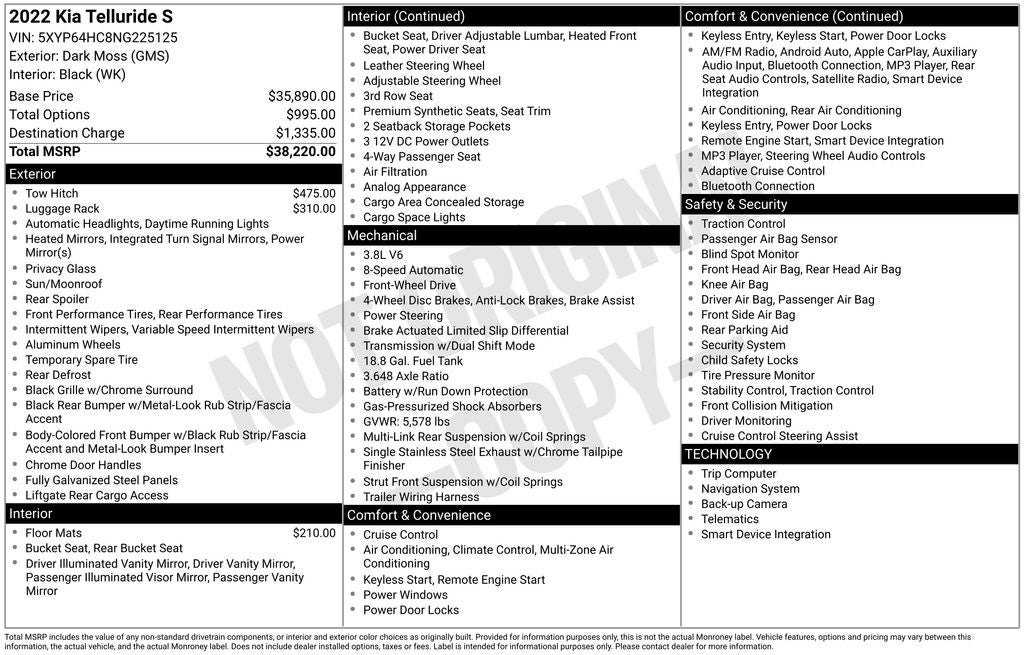 - Vehicle Name: Kia Telluride