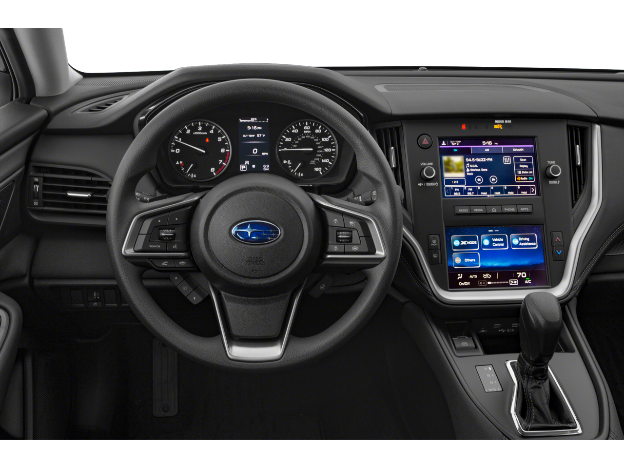 Equipped with Standard Model, 12 Speakers, 4-Wheel Disc Brakes, 4.111 Axle Ratio, ABS brakes, Air Conditioning, All-Weather Floor Liners, Alloy wheels, AM/FM radio: SiriusXM, Auto High-beam Headlights, Auto-dimming Rear-View mirror, Automatic temperature control, Brake assist, Bumpers: body-color, Cargo Net, Compass, Driver door bin, Driver vanity mirror, Dual front impact airbags, Dual front side impact airbags, Electronic Stability Control, Emergency communication system: STARLINK Safety and Security (Subscription Required), Exterior Parking Camera Rear, Four wheel independent suspension, Front anti-roll bar, Front Bucket Seats, Front Center Armrest w/Storage, Front dual zone A/C, Front fog lights, Front reading lights, Fully automatic headlights, Garage door transmitter: HomeLink, harman/kardon® Speakers, Heated door mirrors, Heated Front Bucket Seats, Heated front seats, Heated rear seats, Heated steering wheel, HVAC memory, Illuminated entry, Knee airbag, Leather steering wheel, Low tire pressure warning, Memory seat, Navigation System, Occupant sensing airbag, Outside temperature display, Overhead airbag, Overhead console, Panic alarm, Passenger door bin, Passenger vanity mirror, Perforated Leather-Trimmed Upholstery, Power door mirrors, Power driver seat, Power Liftgate, Power moonroof, Power passenger seat, Power steering, Power windows, Radio: Subaru STARLINK 11.6 Multimedia Nav System, Rear anti-roll bar, Rear Bumper Cover, Rear Seat Back Protector, Rear seat center armrest, Rear window defroster, Rear window wiper, Remote keyless entry, Roof rack, Security system, Speed control, Speed-sensing steering, Split folding rear seat, Spoiler, STARLINK/Apple CarPlay/Android Auto, Steering wheel mounted audio controls, Steering Wheel Paddle Shift Control Switches, Tachometer, Telescoping steering wheel, Tilt steering wheel, Traction control, Trailer Hitch, Trip computer, Turn signal indicator mirrors, Variably intermittent wipers, and Wheels: 18 x 7J Black Aluminum Alloy.