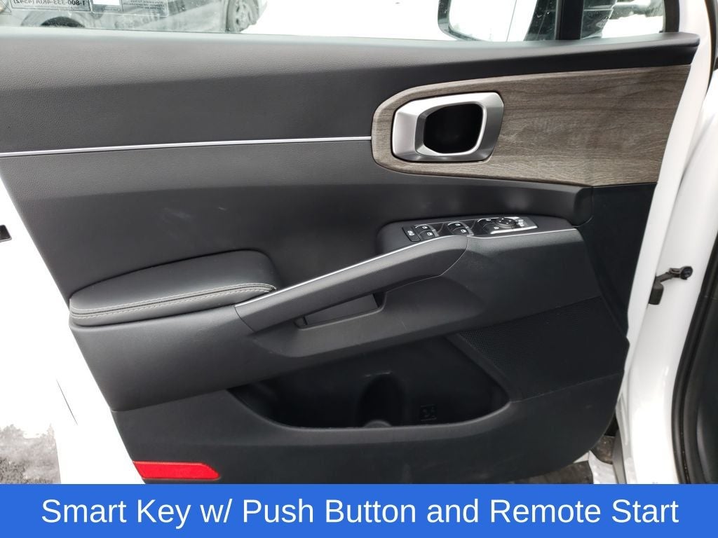 Glacial White Pearl 2023 Kia Sorento X-Line S AWD 8-Speed Automatic 2.5L I4 DGI DOHC 16V LEV3-ULEV70 191hp Sorento X-Line S, 4D Sport Utility, 2.5L I4 DGI DOHC 16V LEV3-ULEV70 191hp, 8-Speed Automatic, AWD, Glacial White Pearl, Black Artificial Leather, 3rd row seats: split-bench, 4-Wheel Disc Brakes, 4.081 Axle Ratio, 6 Speakers, ABS brakes, Air Conditioning, Alloy wheels, AM/FM radio: SiriusXM, Apple CarPlay & Android Auto, Auto High-beam Headlights, Automatic temperature control, Brake assist, Bumpers: body-color, Cargo Net, Carpet Floor Mats, Delay-off headlights, Driver door bin, Driver vanity mirror, Dual front impact airbags, Dual front side impact airbags, Electronic Stability Control, Emergency communication system, Exterior Parking Camera Rear, Four wheel independent suspension, Front anti-roll bar, Front Bucket Seats, Front Center Armrest, Front dual zone A/C, Front reading lights, Fully automatic headlights, Heated door mirrors, Heated Front Bucket Seats, Heated front seats, Illuminated entry, Knee airbag, Leather Shift Knob, Leather steering wheel, LED Interior Lighting, Low tire pressure warning, Mudguards, Navigation System, Occupant sensing airbag, Outside temperature display, Overhead airbag, Overhead console, Panic alarm, Panoramic Power Sunroof w/Power Sunshade, Panoramic Sunroof Package, Passenger door bin, Passenger vanity mirror, Power door mirrors, Power driver seat, Power steering, Power windows, Radio data system, Radio: AM/FM Audio System, Rear air conditioning, Rear anti-roll bar, Rear reading lights, Rear seat center armrest, Rear window defroster, Rear window wiper, Remote keyless entry, Roof rack: rails only, Security system, Smart Key w/ Push Button and Remote Start, Speed control, Speed-sensing steering, Split folding rear seat, Spoiler, Steering wheel mounted audio controls, SynTex Artificial Leather Seat Trim, Tachometer, Telescoping steering wheel, Tilt steering wheel, Traction control, Trip computer, Turn signal indicator mirrors, Variably intermittent wipers, Wheels: 7.5J x 18 Gloss Black Alloy.