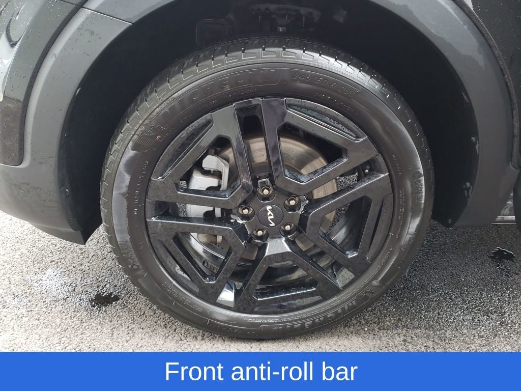 Ebony Black 2023 Kia Telluride EX X-Line AWD 8-Speed Automatic 3.8L V6 DGI DOHC Dual CVVT Telluride EX X-Line, 4D Sport Utility, 3.8L V6 DGI DOHC Dual CVVT, 8-Speed Automatic, AWD, Ebony Black, Black Leather, 3.648 Axle Ratio, 3rd row seats: split-bench, 4-Wheel Disc Brakes, 6 Speakers, ABS brakes, Air Conditioning, Alloy wheels, AM/FM radio: SiriusXM, Apple CarPlay & Android Auto, Auto High-beam Headlights, Auto-dimming Rear-View mirror, Auto-leveling suspension, Automatic temperature control, Brake assist, Bumpers: body-color, Carpet Floor Mats, Compass, Delay-off headlights, Driver door bin, Driver vanity mirror, Dual front impact airbags, Dual front side impact airbags, Electronic Stability Control, Emergency communication system: 911 Connect, Exterior Parking Camera Rear, Four wheel independent suspension, Front anti-roll bar, Front Bucket Seats, Front Center Armrest, Front dual zone A/C, Front reading lights, Fully automatic headlights, Heated & Ventilated Front Bucket Seats, Heated door mirrors, Heated front seats, Heated steering wheel, Illuminated entry, Knee airbag, Leather Seat Trim, Leather Shift Knob, Leather steering wheel, Low tire pressure warning, Navigation System, Occupant sensing airbag, Outside temperature display, Overhead airbag, Overhead console, Panic alarm, Passenger door bin, Passenger vanity mirror, Power door mirrors, Power driver seat, Power Liftgate, Power moonroof, Power passenger seat, Power steering, Power windows, Radio data system, Radio: AM/FM Display Audio System, Rear air conditioning, Rear anti-roll bar, Rear audio controls, Rear reading lights, Rear side impact airbag, Rear window defroster, Rear window wiper, Reclining 3rd row seat, Remote keyless entry, Roof rack: rails only, Sage Green Interior Color Package, Security system, Smart Key w/ Push Button and Remote Start, Speed control, Speed-sensing steering, Split folding rear seat, Spoiler, Steering wheel mounted audio controls, Tachometer, Telescoping steering wheel, Tilt steering wheel, Traction control, Trip computer, Turn signal indicator mirrors, Variably intermittent wipers, Ventilated front seats, Wheels: 20 x 7.5 Black Finish X-LINE Exclusive.