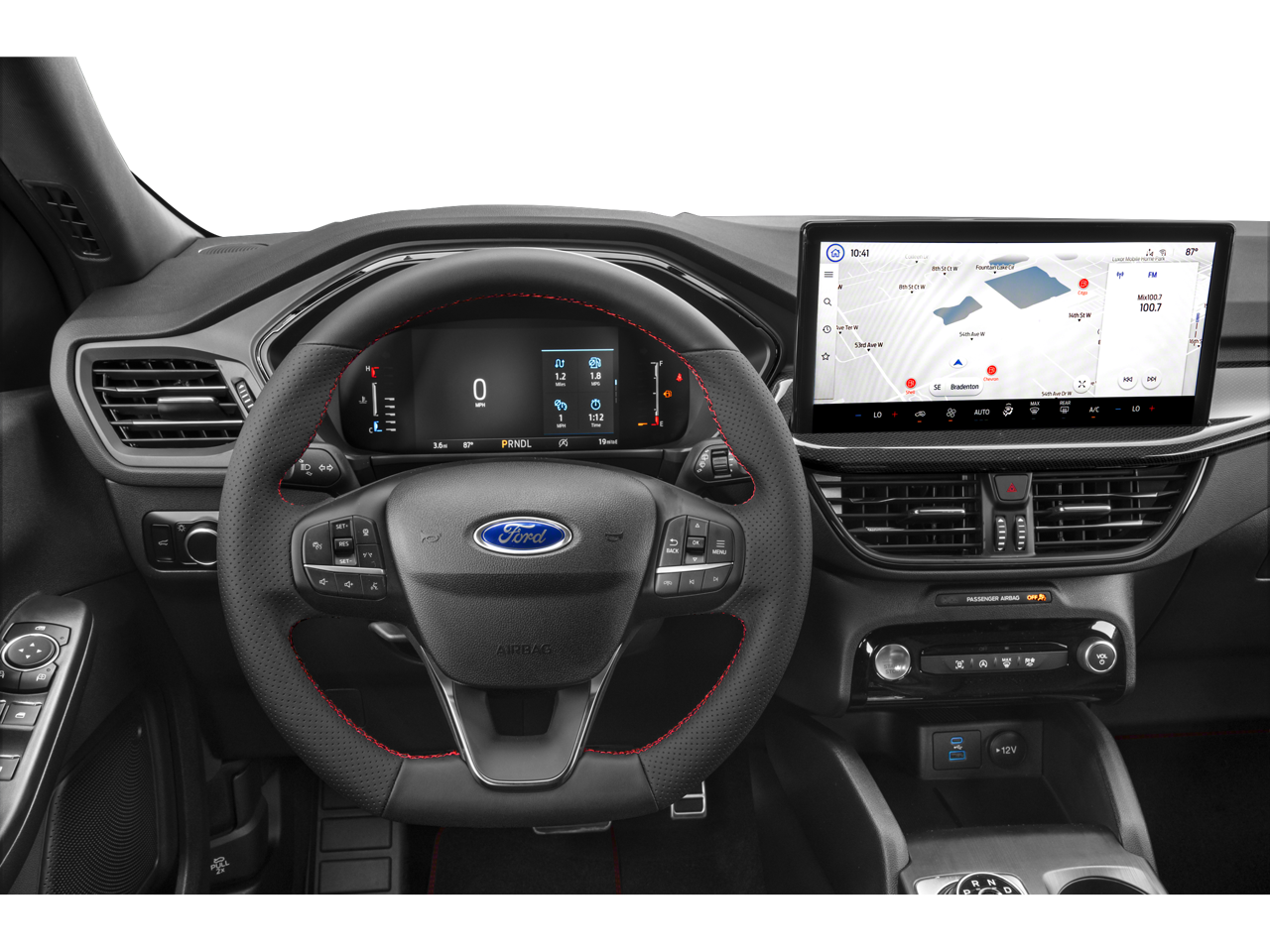 The Escape ST-Line also features SYNC 4 with Enhanced Voice Recognition, Adaptive Cruise Control with Stop-and-Go, Heated Sideview Mirrors, Connected Navigation, Heated Steering Wheel, Rear Parking Sensor, Speed Sign Recognition, Rear-View Camera, Remote Starter System, and Heated Front Row Seats.