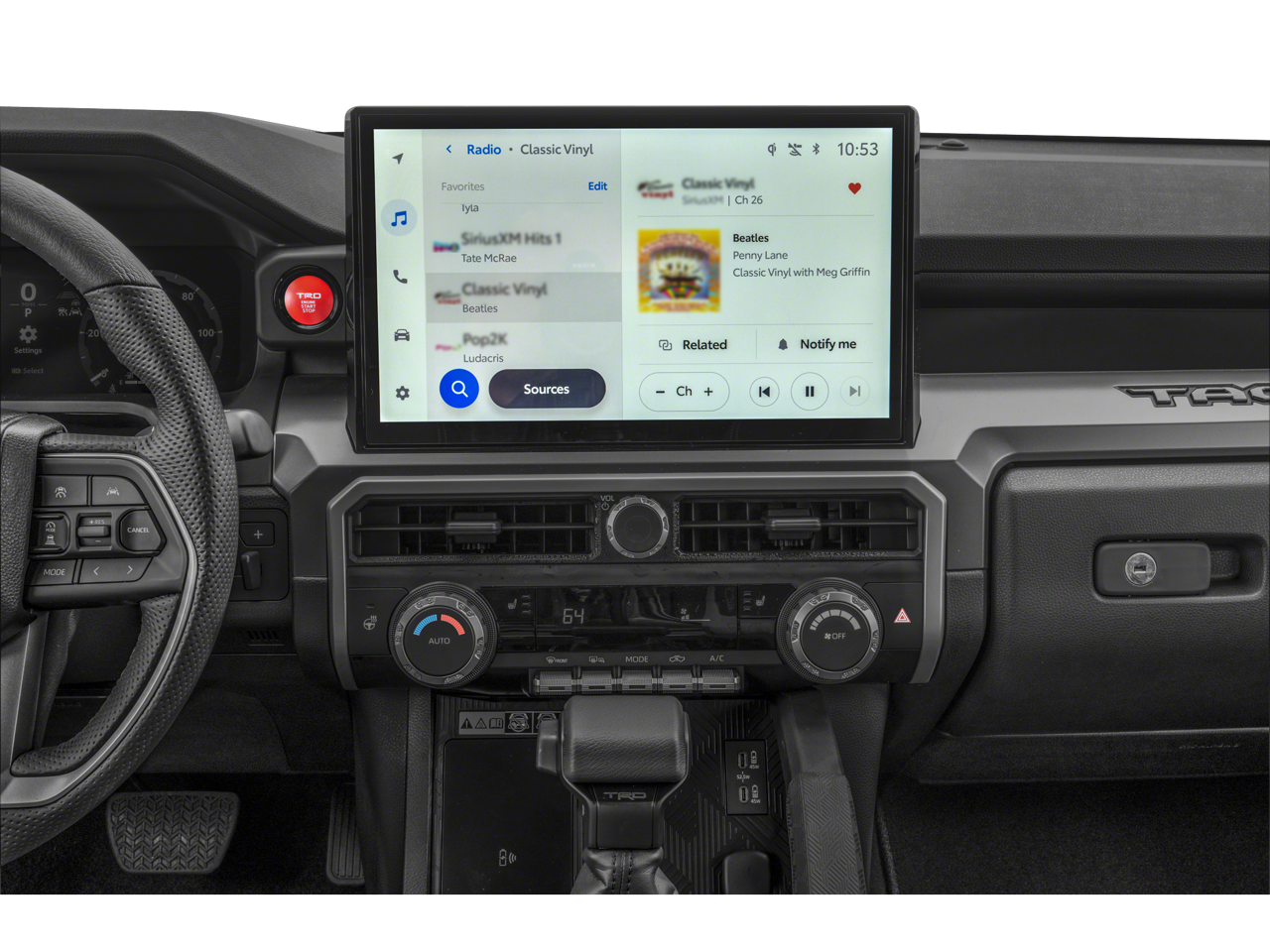 The TRD Off-Road Package takes this Tacoma to the next level, offering advanced off-road technology like the 3D Multi-Terrain Monitor, selectable front, side and rear views, and the Stabilizer Disconnect Mechanism for enhanced off-road performance. The Towing Technology Package, including the Integrated Trailer Brake Controller, makes this Tacoma an excellent choice for those with towing needs.